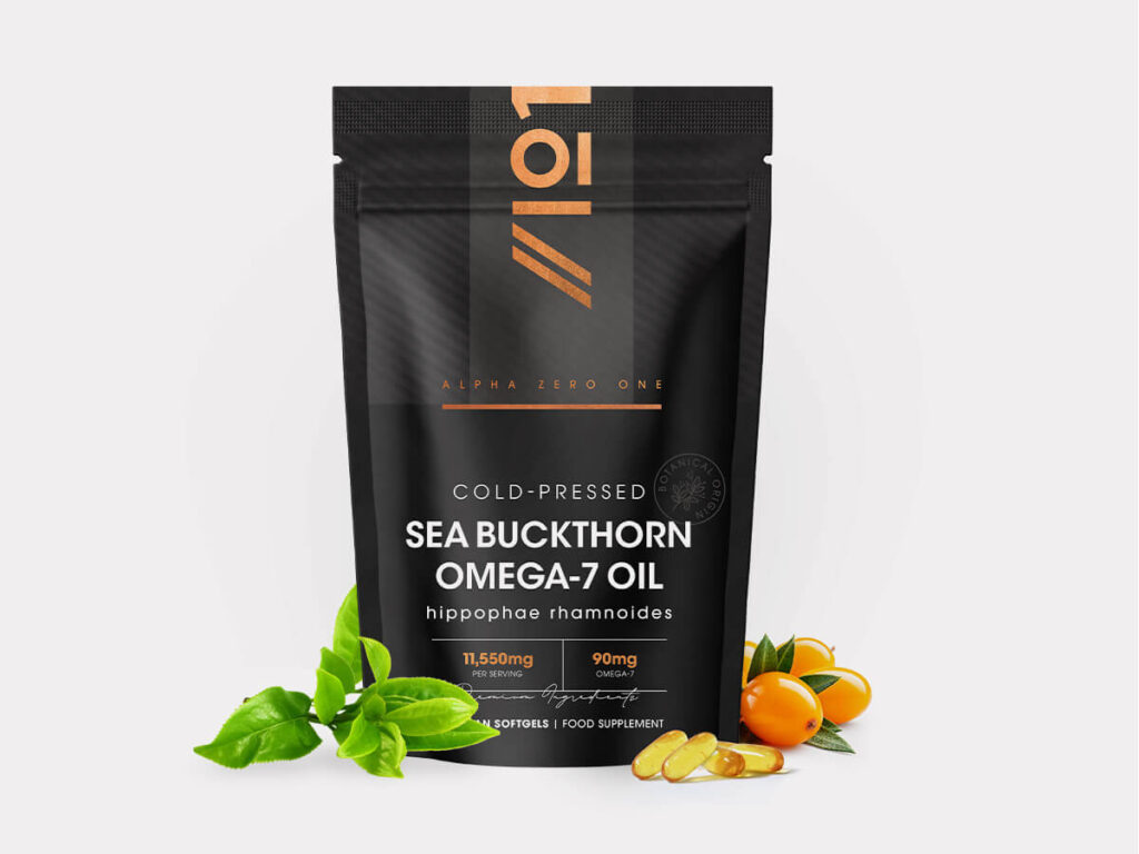 Sea Buckthorn Omega 7 Oil 11,550mg – 60 Vegan Softgelsc- High Strength 90mg Palmitoleic Acid- Pure & Potent Hippophae Rhamnoides Supplement Capsules – by Alpha01
