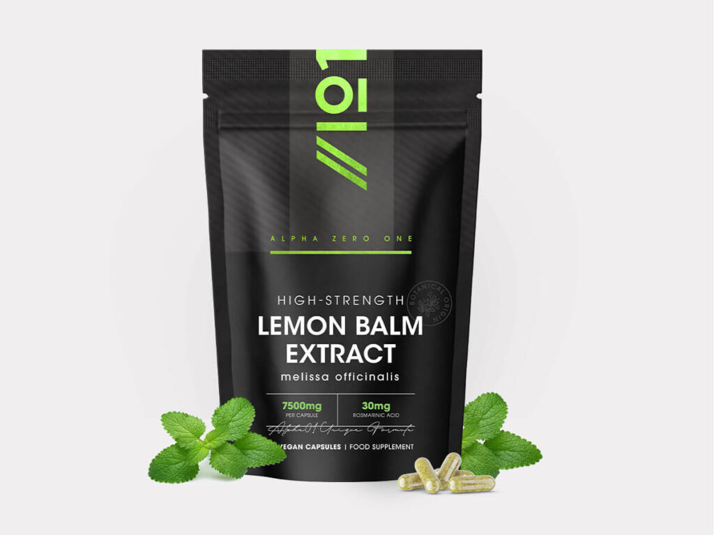 Lemon Balm Extract 7500mg – Standardised 30mg Rosmarinic Acid Supplement – 90 Vegan Capsules (3 Months Supply) – Resealable and Recyclable Pouch by Alpha01